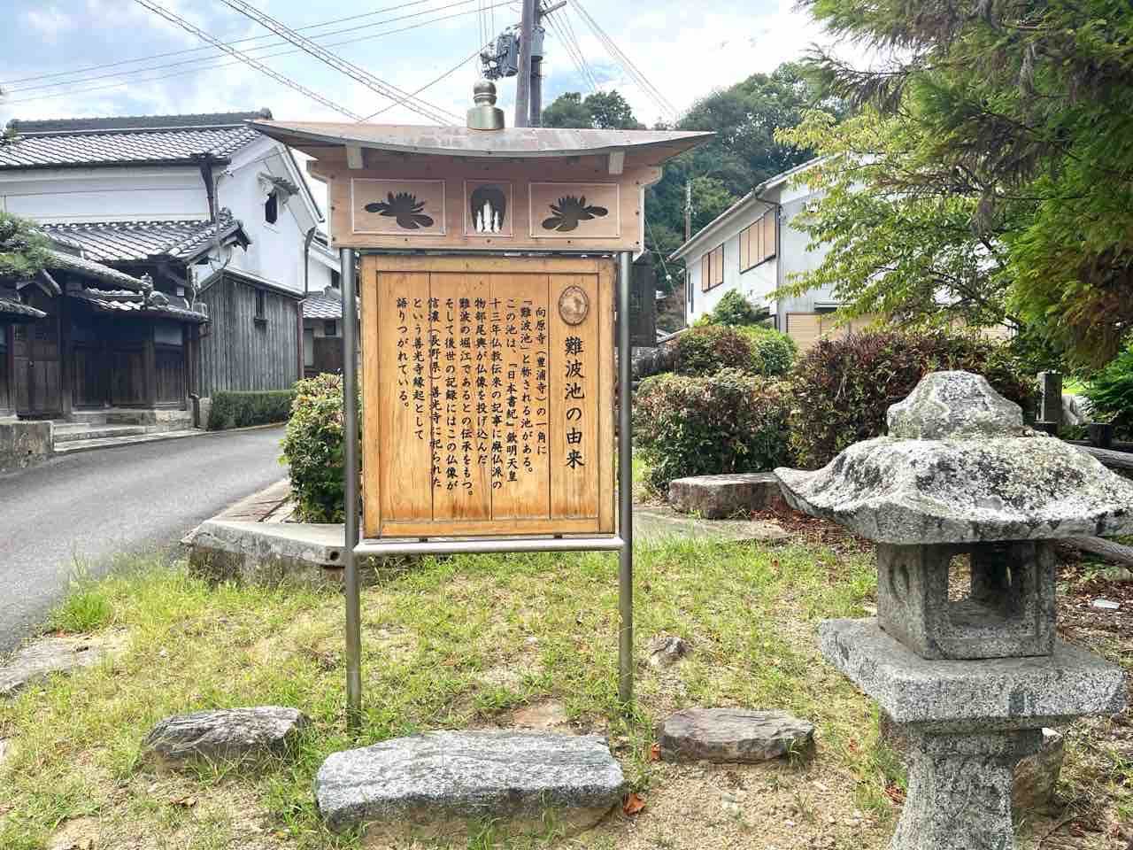 「日本書紀」にも登場する歴史的な場所で、蘇我氏が仏教を広めようとした背景がありますが、仏教に反対した物部尾輿が仏像を投げ捨てたという伝承が残る池です。