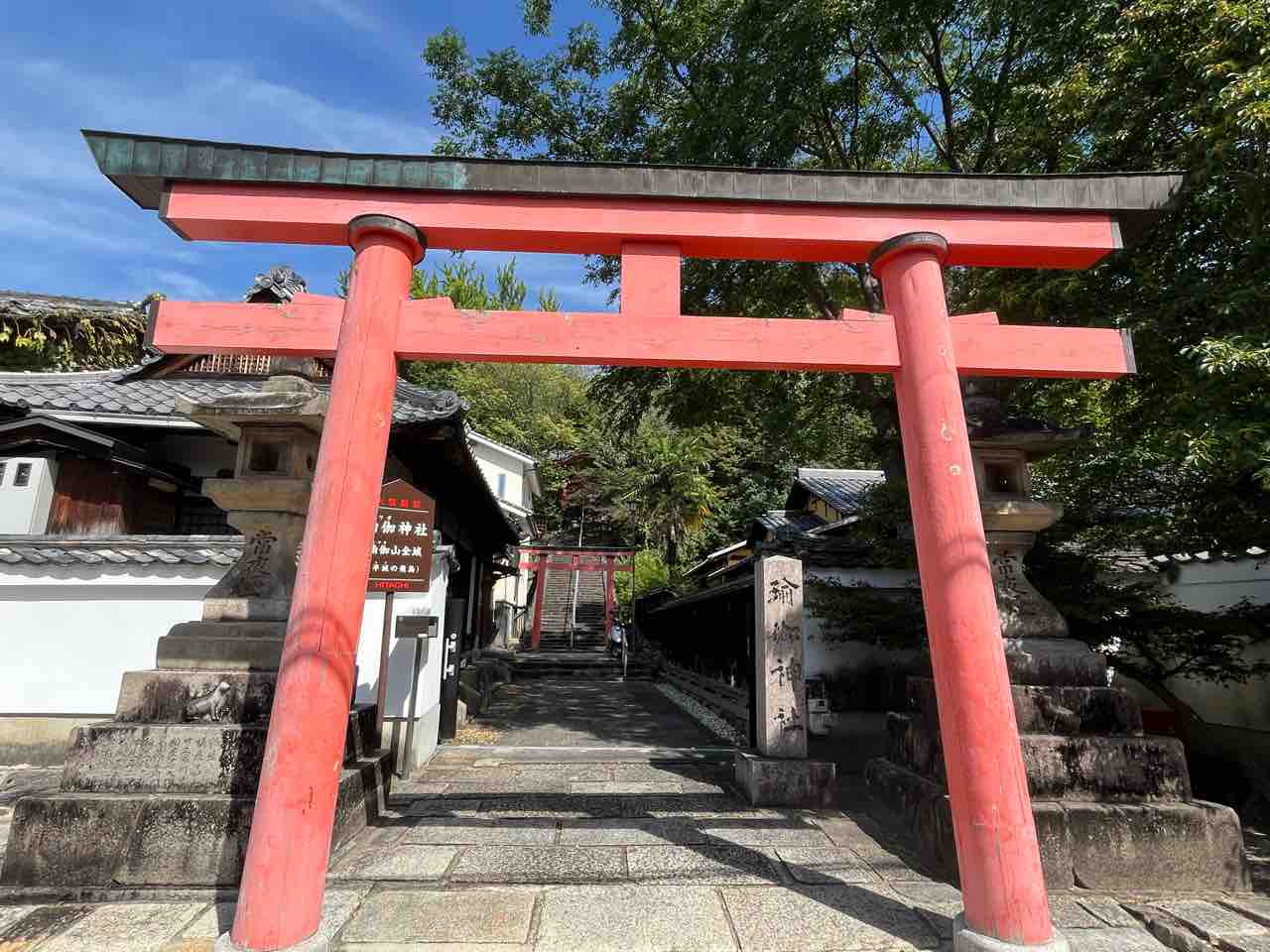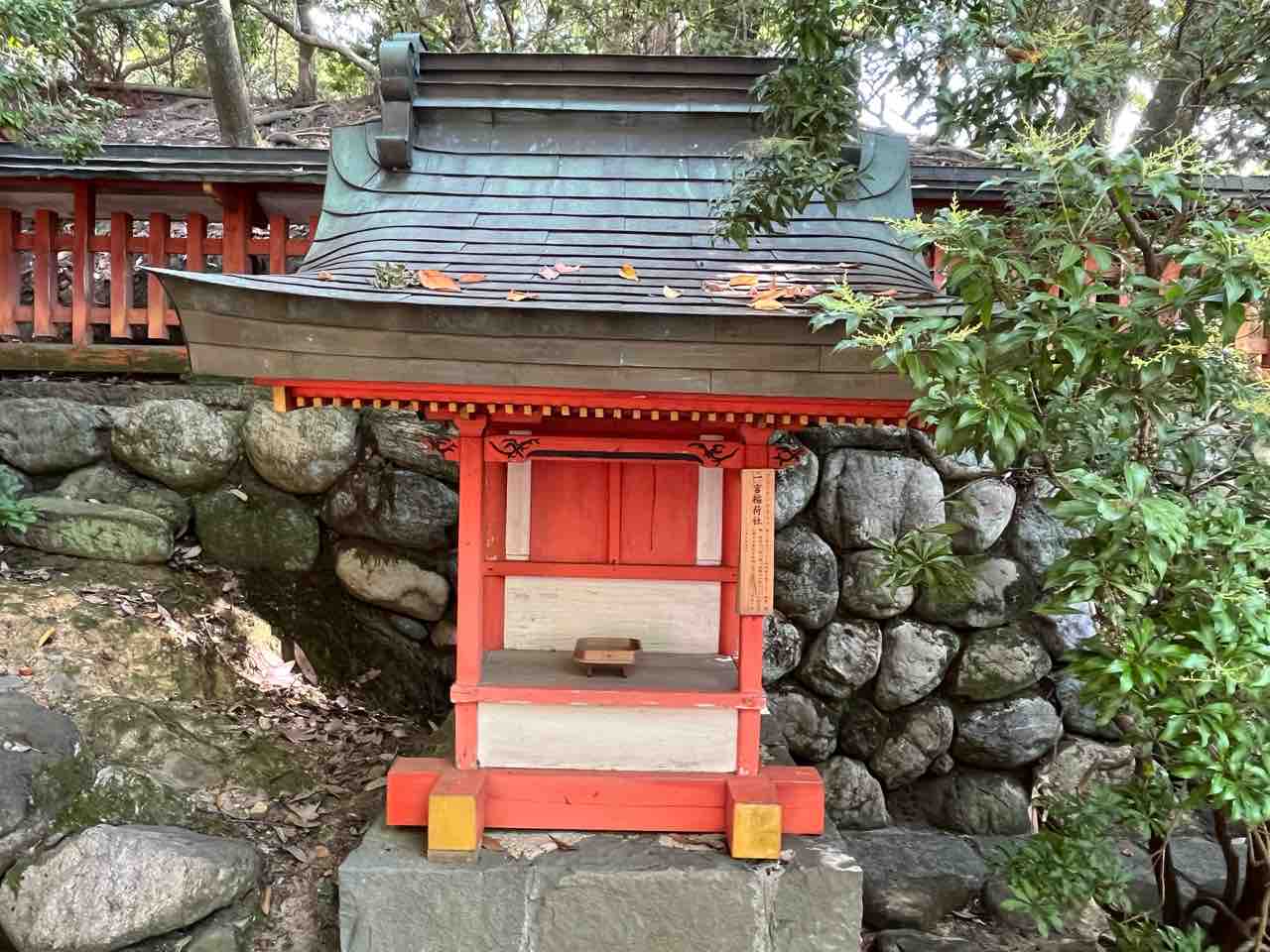 境内には飛鳥神並社、一言稲荷社、猿田彦神社、久恵比古社などが点在していて、石段を登ると朱色の拝殿が現れます。振り返れば大和青垣の絶景が広がって、空気が澄んだ日には大和三山も望めるようです。久恵比古社には大神神社の摂社として祀られている久恵比古神というかかしの姿をした智慧の神様が祀られています。