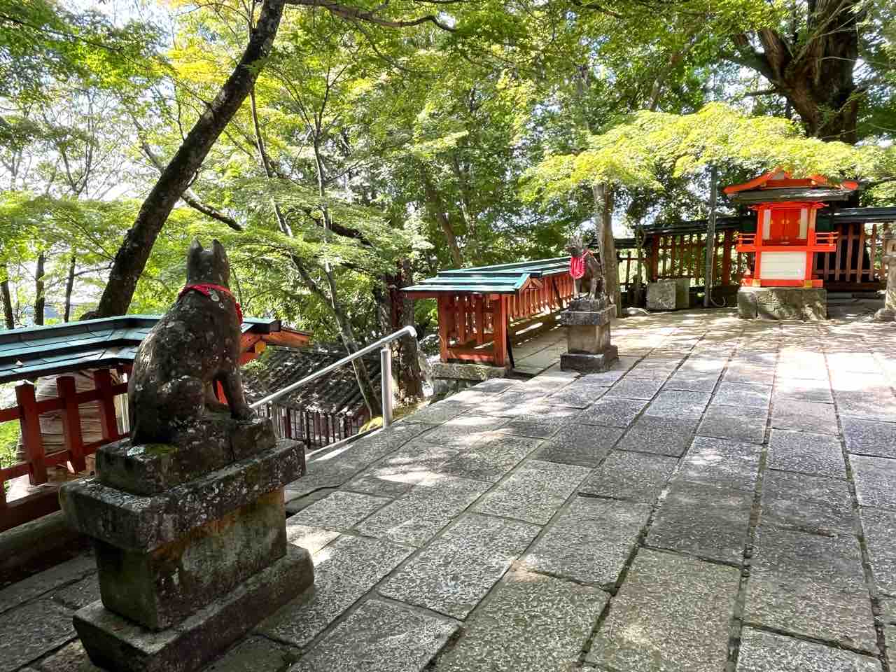 主祭神は宇迦之御魂大神。食べ物を司る神様で、産業全般の守護神として信仰されています。拝殿前には狛犬ではなく狛狐がいて、稲荷信仰とのつながりも感じられます。