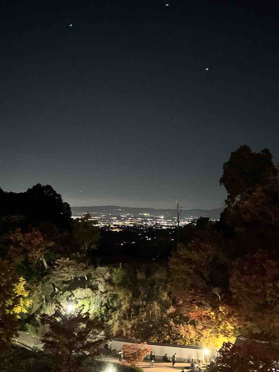 五重塔の修繕工事も完了していて、塔付近から明日香村の夜景を見ることができました。写真では分かりにくいですが星も見えました。