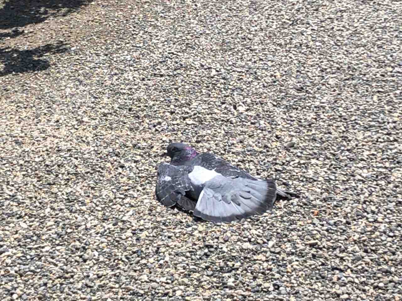 日向ぼっこする鳩。鳩への餌やりを禁じている神社もありますがこちらでは鳩の餌も販売されており、餌をやることが許可されているような感じです。
