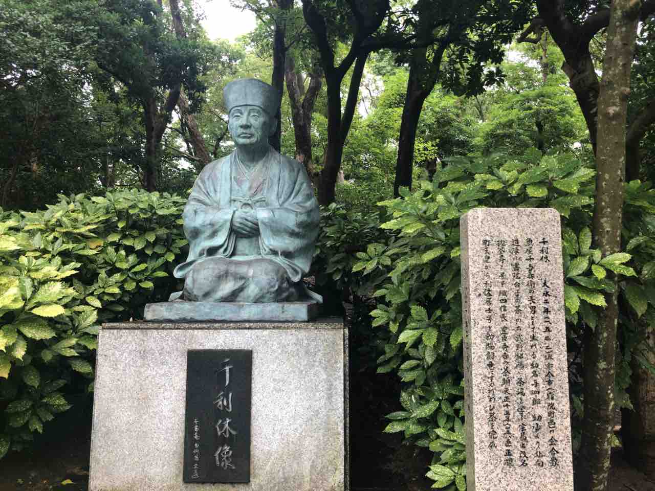 堺市生まれの茶の湯の巨匠・千利休の像も飾られています。