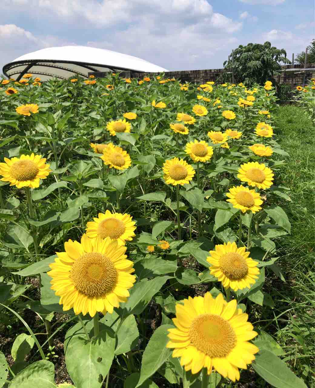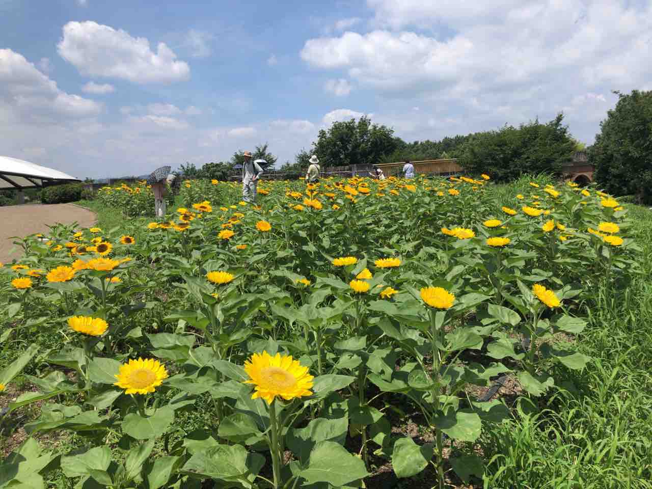 北口から入ってすぐのところにもたくさんヒマワリが植えられていました。