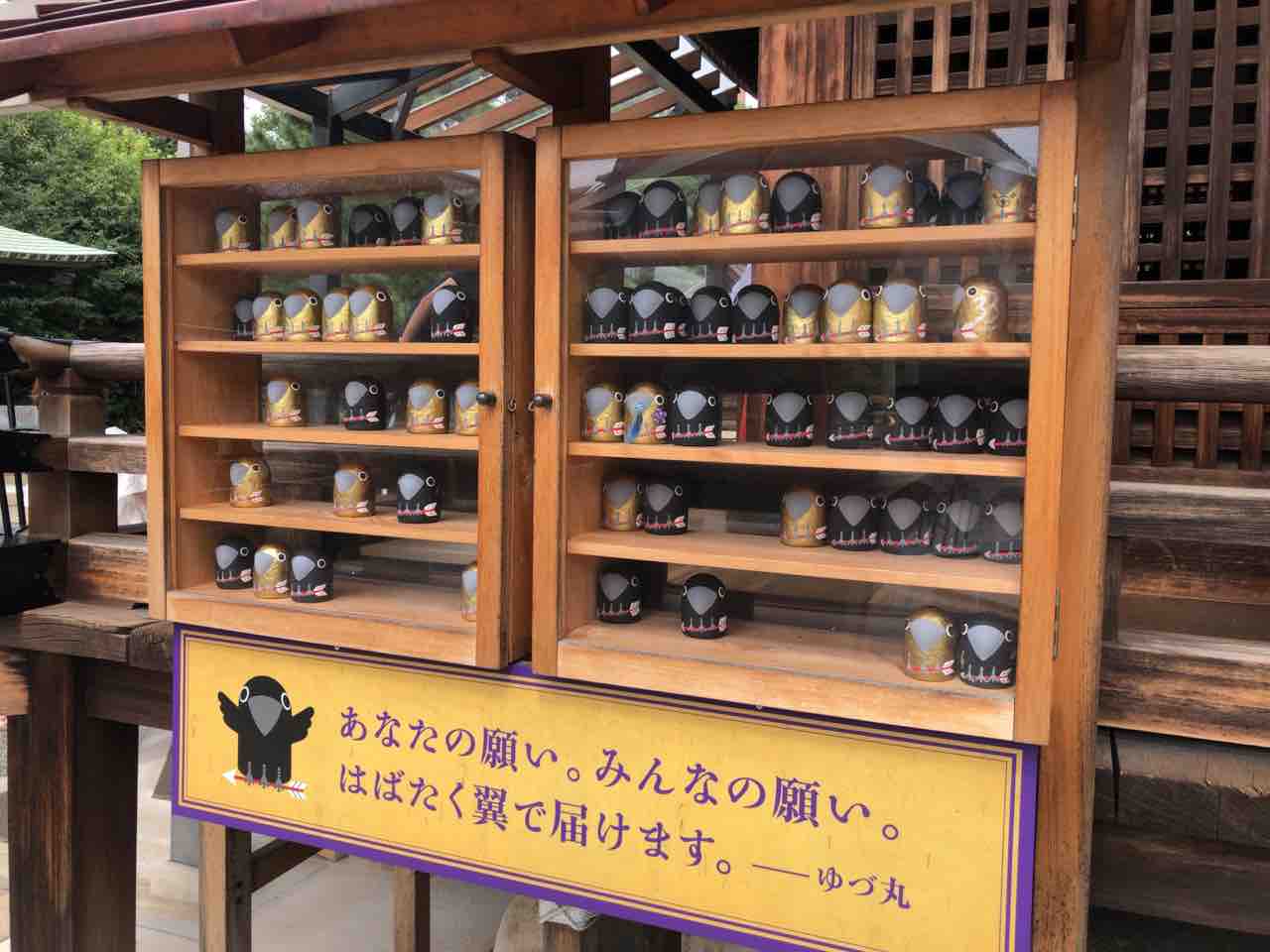 また、八咫烏(ヤタガラス)という三本脚のカラスがこの神社のシンボルとなっています。