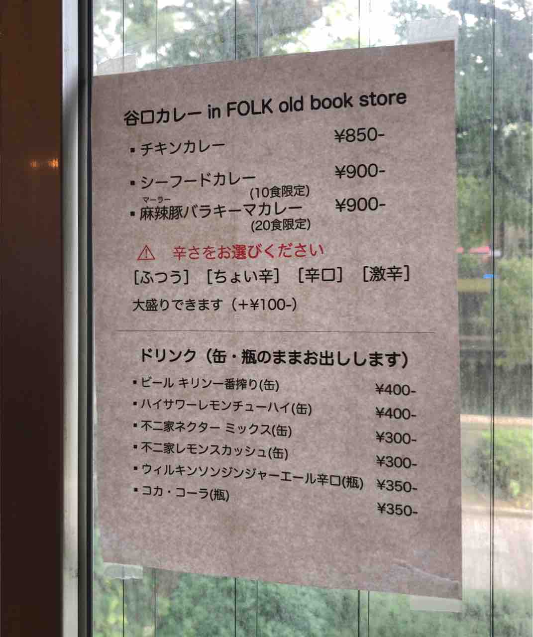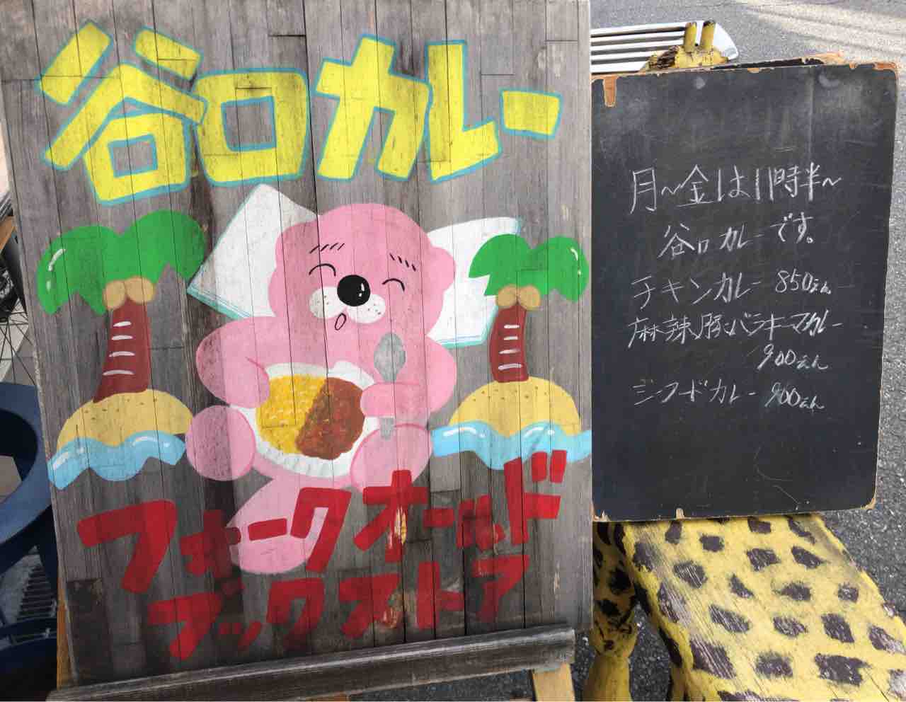 この間カレーを食べに行った『ガネーシュM』と同じ道路沿いにある『谷口カレー』を紹介します。『FOLK old book store』(古書店)内にあるスパイスカレーのお店です。