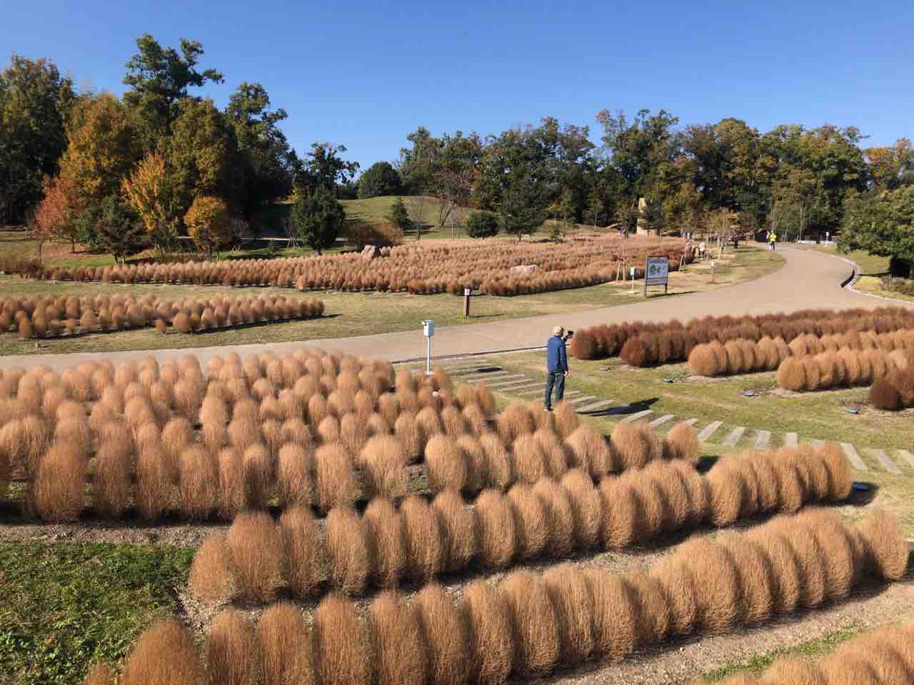 公園東口付近にあるカリヨンの丘ではコキア並木が見れました。