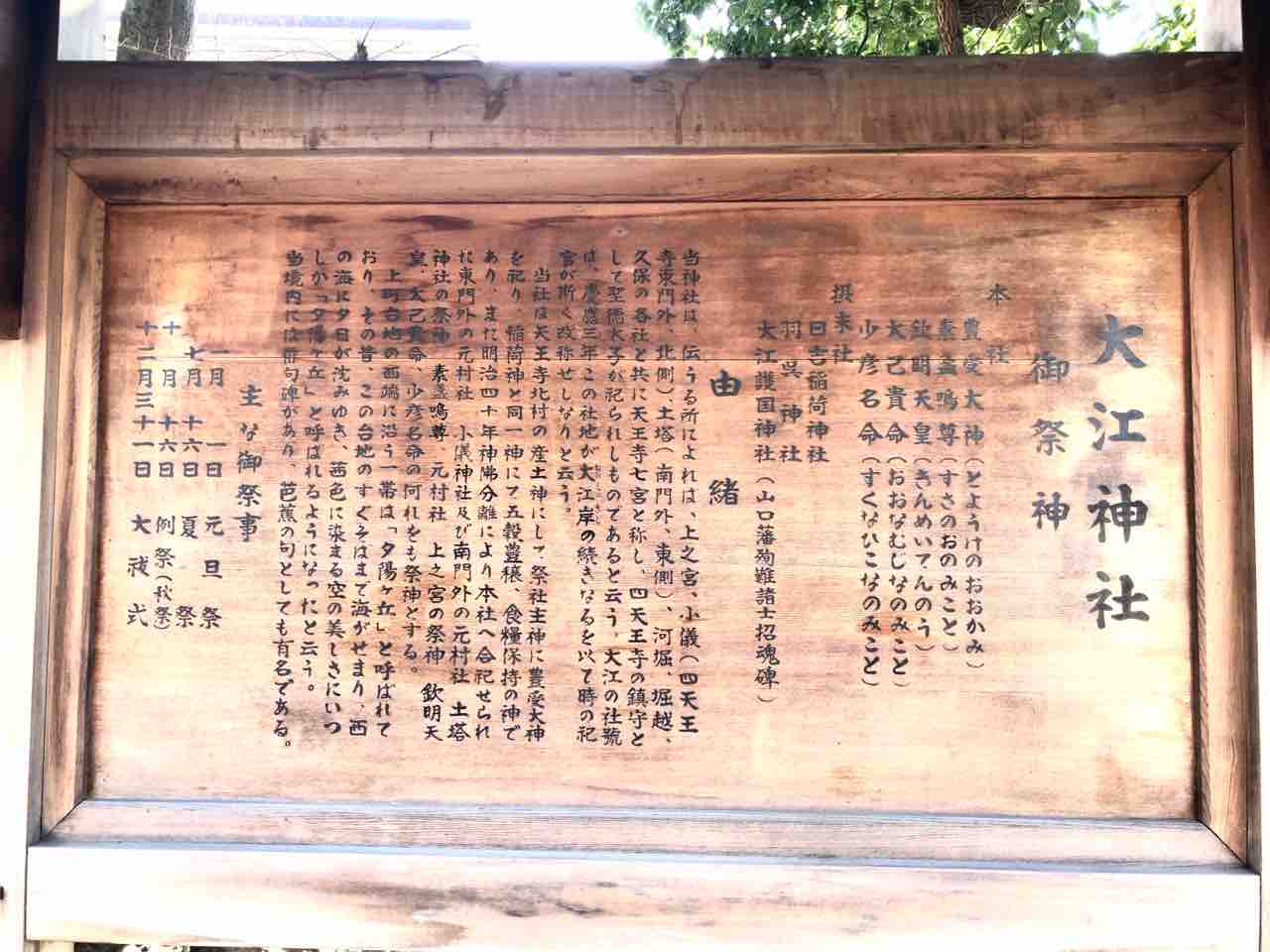 四天王寺には聖徳太子が建立した神社仏閣が数多く存在しますが、大江神社もそのうちの一つです。