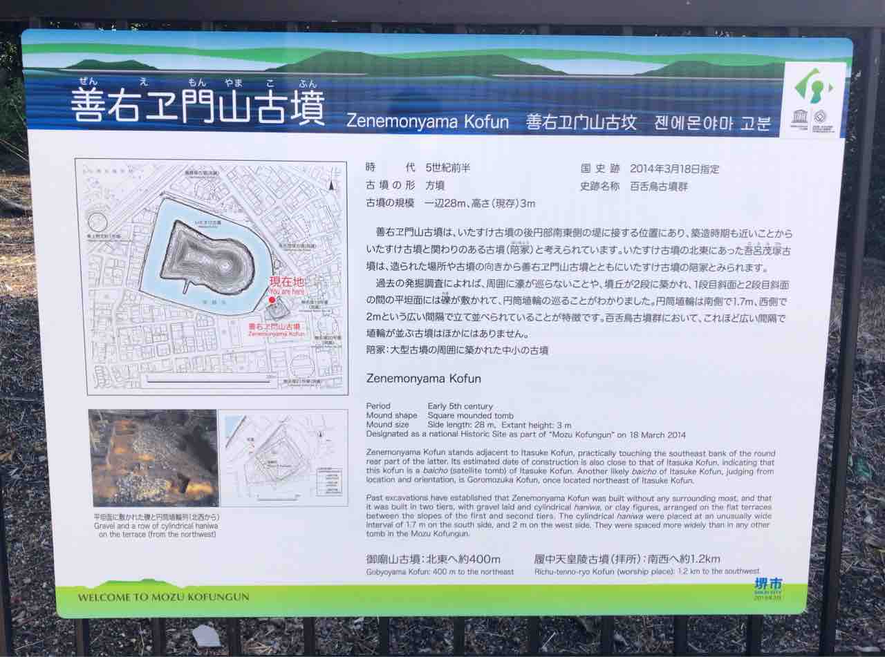 この2mおきというのが珍しいらしく、ここまで広間隔なのは百舌鳥古墳群の中で善右衛門山古墳だけのようです。善右衛門というのが人の名前みたいで気になります。由来は不明です。