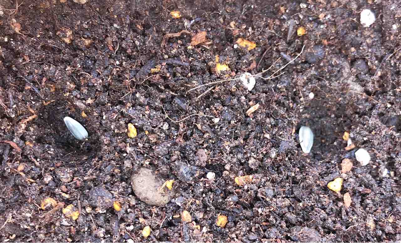 適当に間隔を開けて種まきをしました。上が大根、下がひまわりの写真です。