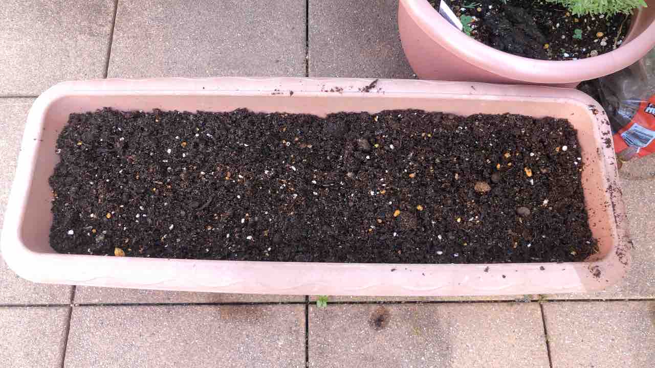 鉢やプランターでも栽培できると書かれていたのでプランターで育ててみることにしました。大きくなったら植え替えようと思います。ホームセンター・コーナンで買ってきた園芸用の土を使いました。
